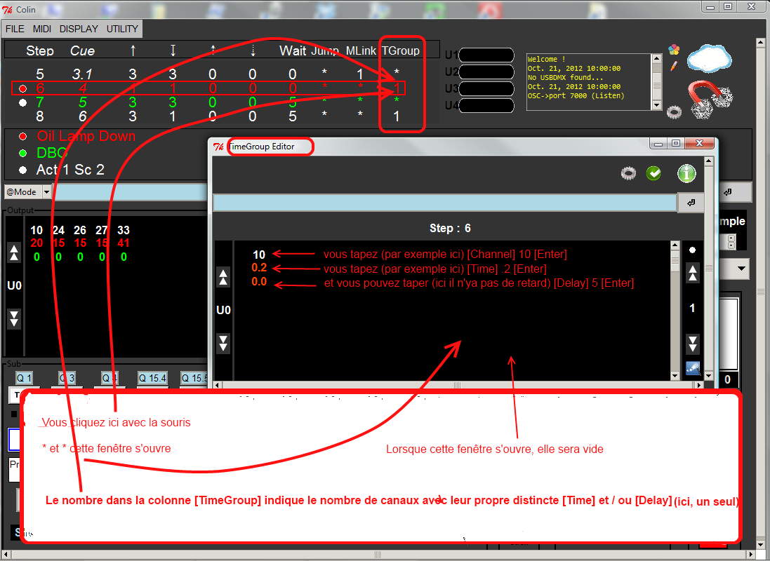 Maintenant, vous créez le [TimeGroup] pour [Cue] 1 (regardez la capture d'écran dans mon post précédent.) (Assurez-vous que la case rouge est allumé Step 1 (Cue 1)