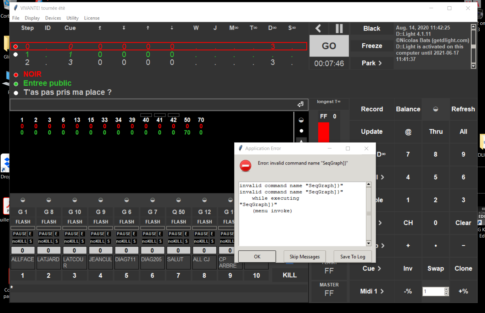 Effectivement il y avait des mises à jour en attentes . Donc ce matin je l'ai installes, et je passe Dlight en v.11, j'ouvre mon show et s'affiche cette fenêtre !!