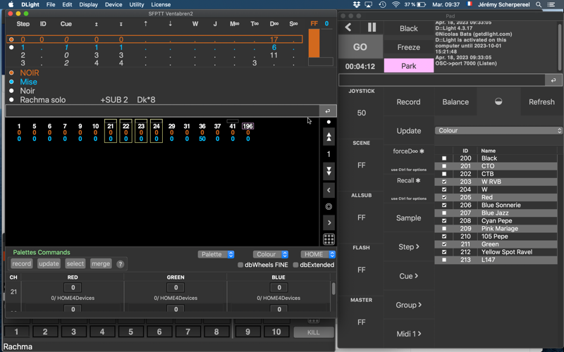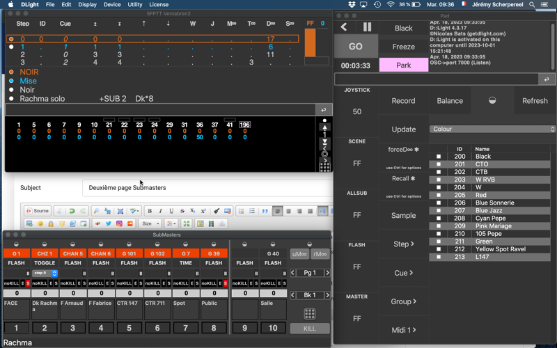 Pour parer à ça, je configure en MIDI sur le nanoKontrol un mélange de Submasters et de Substick Pour pouvoir garder par exemple la Face en 1 et la salle en 8, mais je dois le configurer différemment en fonction des show et nécessités.
