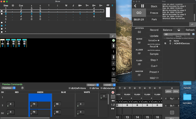 effectivement le numPad n'est pas très utile et c'est pour ça que généralement en cliquant sur la demi-lune entre le Balance et Refresh on affiche les Palettes.2bis- Dans cette même idée, le pad pourrait être resegmenter, dans mon utilisation le Numpad ne me sert jamais, mais les menu deroulant des step,cue, Recall, me serait bien utiles en accès direct. Ca pourrait même ressembler à ce qu'on peut faire avec la telecomande OSC mais directement dans Dlight.