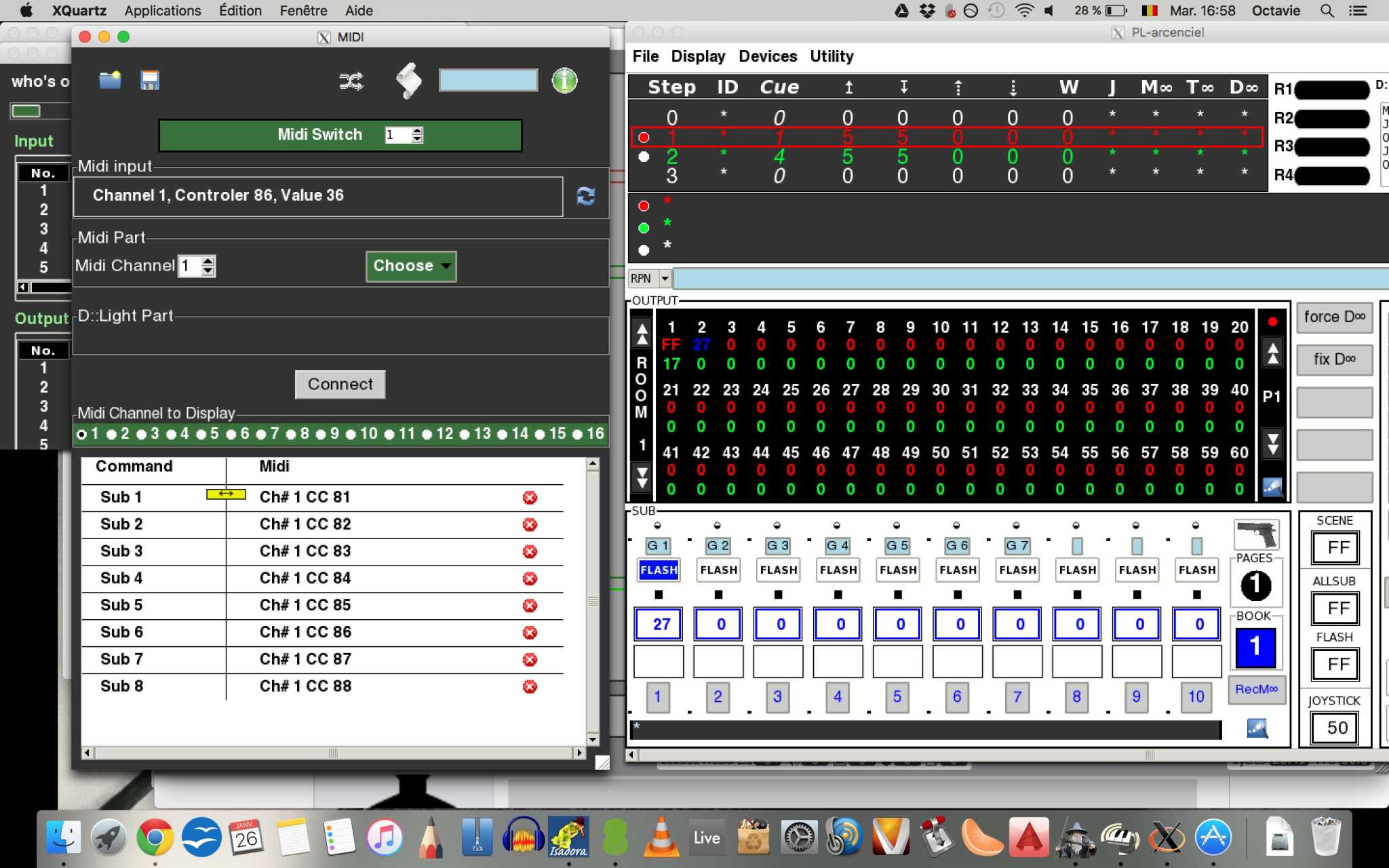 L'avantage avec le midi c'est que je peux constater que dlight reçoit toutes les informations midi (fenêtre Display midi) mais qu'il refuse de les appliquer à mes sub.