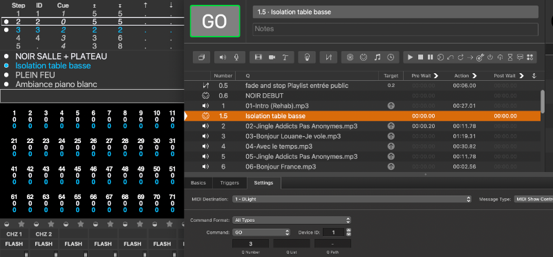 Alors en effet, sur mes régies précédentes je controlais QLAB depuis DLIGHT en OSC (ou l'inverse, peu importe)