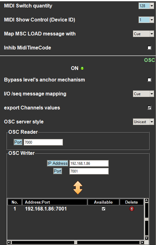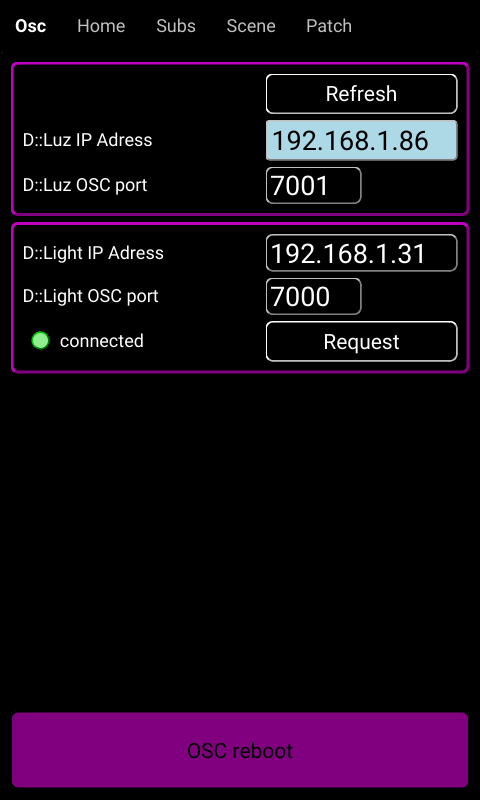 :Light Osc port : 7000connected allumé en vert