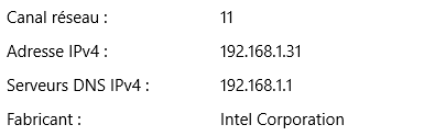 ok, il manque juste celle de l'IP de ta carte réseau