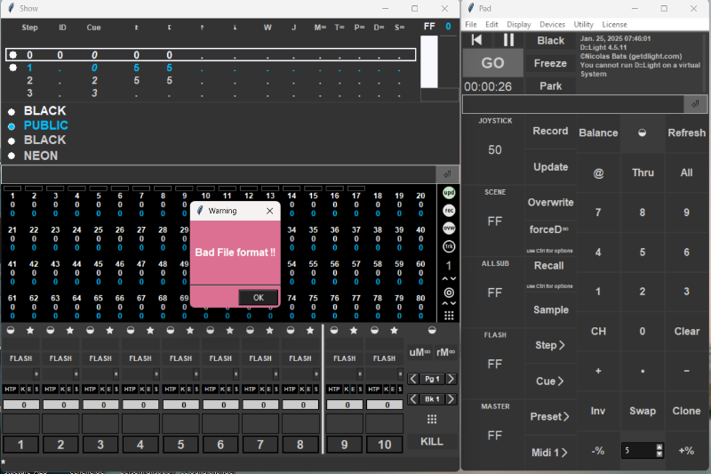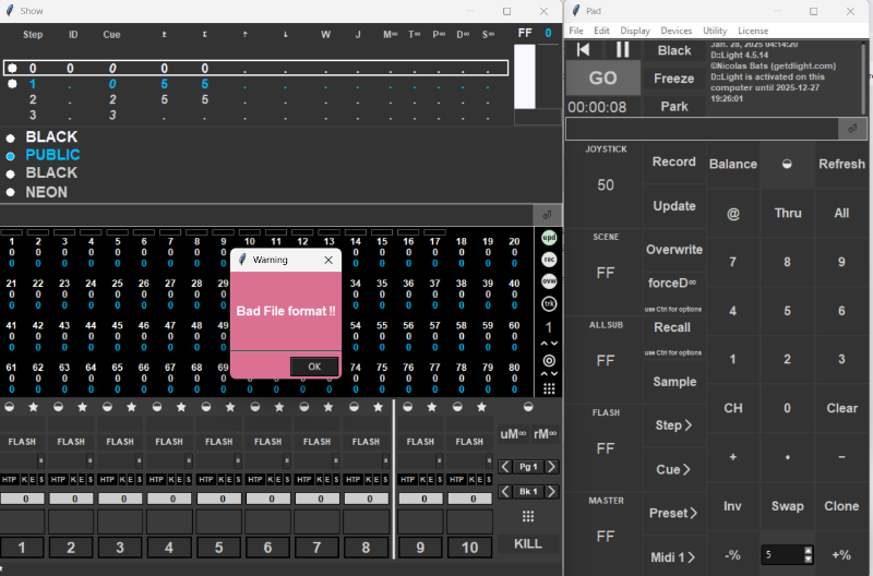 j'ai beaucoup galerer aujour'hui pour arriver à paramettrer dmx-an2. maintenant je vois que sur mon bloc, la liaison dmx clignote, mais pas de lumière qui s'allume.