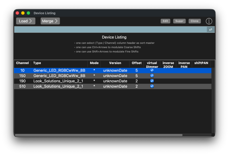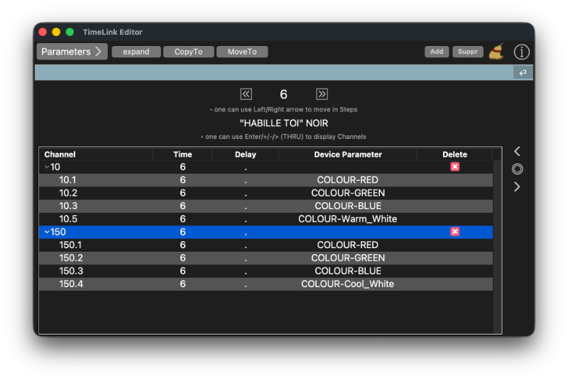 Par ailleurs j'ai 2 rubans le LED RGB WW CW 8bits dans mon spectacle et leurs données ne sont pas prises en compte par D light alors que celles des autres projecteurs à LED du spectacle le sont . Comment puis je faire pour retrouver les données relatives à ces rubans LED dans D light? (il n'y a que la valeur du dimmer qui est présente)