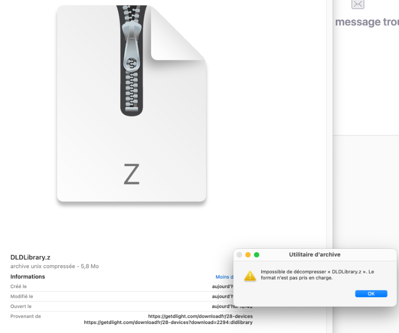 le fichier téléchargeable sur le site est à ouvrir par DLight dans le menu Display/Setup/Device