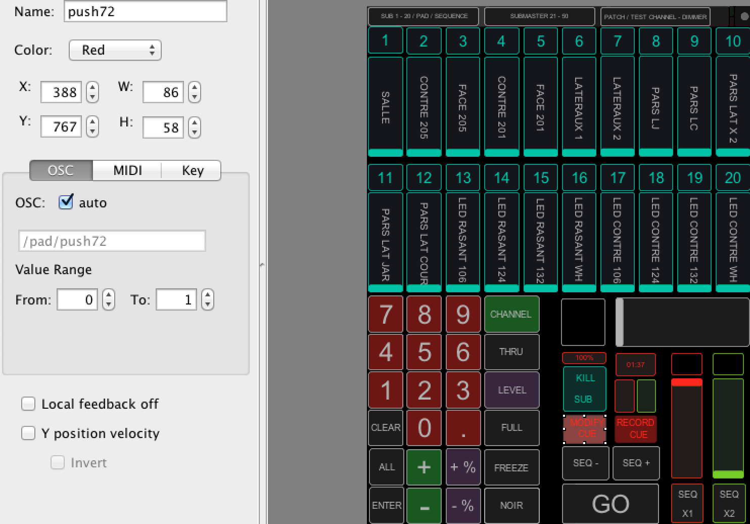 je cherche une syntaxe OSC: un label qui affiche qd je frappe sur le pad, like /patch/input