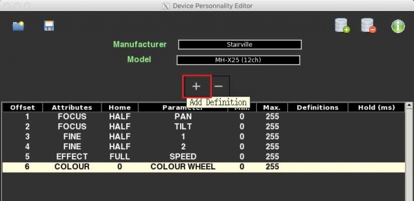 Pour créer une personality il vous suffit simplement d'assigner à chaque canal DMX un attribut (à l'aide du sigle
