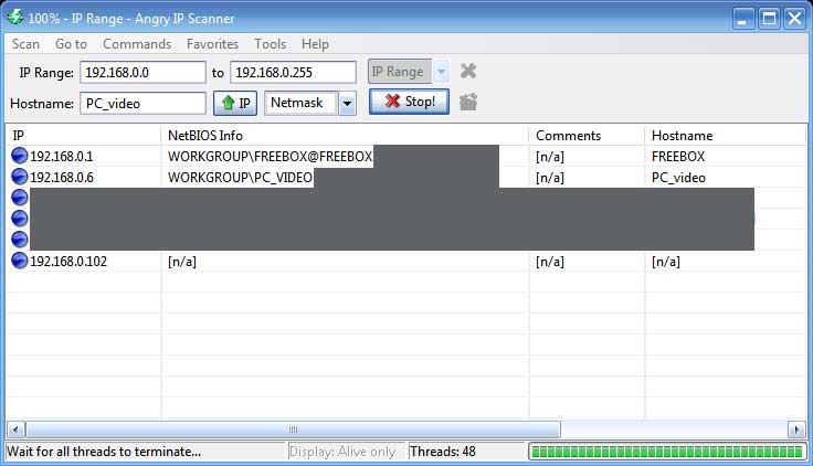 - Installer le logiciel IP Angry Scanner sur votre ordinateur (disponible sur Mac, PC et Linux) ou Wireshark